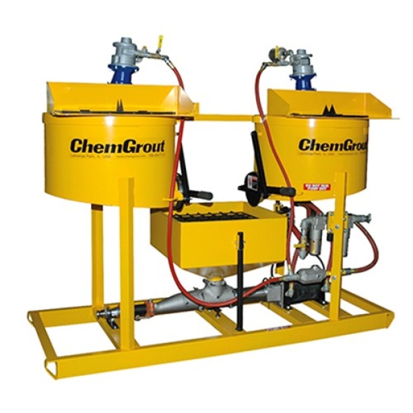 La serie de bombas de alta presión ChemGrout son bombas de lechada montadas sobre patines. Estas bombas de bajo mantenimiento están diseñadas para funcionar con su planta de mezcla de lechada o sistema de mezcla. La bomba de lechada es una bomba de doble efecto, de desplazamiento positivo, tipo émbolo, disponible en tres tamaños diferentes, 3,5 × 8, 3 × 8 y 2 × 8, que ofrecen presiones de descarga de 800 psi, 1,000 psi y 2,000 psi, respectivamente. La bomba de émbolo está diseñada para que la conversión entre las salidas de presión sea rápida, fácil y rentable. La bomba tiene elementos de sujeción patentados que reducen drásticamente el tiempo de desmontaje para la limpieza y el mantenimiento. La bomba está disponible con una manguera de succión acanalada ID de 2 ″ o una tolva de retención de 21 galones que está conectada directamente a la bomba de émbolo.