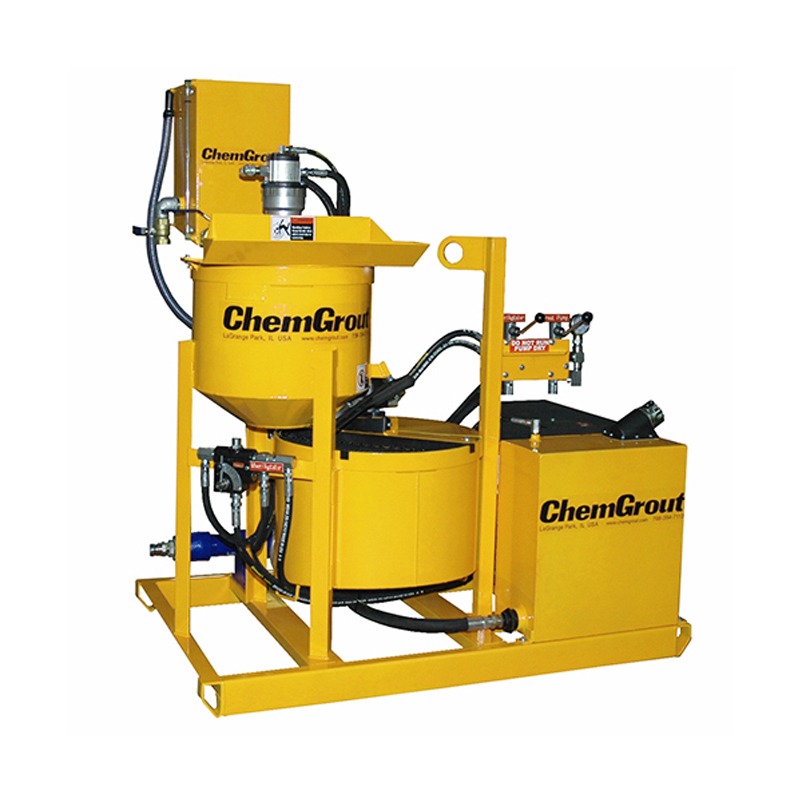 Estas unidades están diseñadas para inyectar lechadas de cables PT para pequeños tendones o huecos. Los materiales incluyen Sika 300 PT, MBT 1205 y una amplia variedad de otras lechadas PT. Esta unidad cuenta con un tanque de mezcla coloidal de alto cizallamiento de 20 galones (76 litros), una bomba de cavidad progresiva de 2L4 y un tanque de agitación de 34 galones (128 litros). El tanque de mezcla está equipado con un deflector y un impulsor de alta velocidad de cizallamiento variable, que gira a velocidades de hasta 3000 rpm, proporcionando una acción de mezcla rápida. Desde el tanque de mezcla, el material fluye a través de una válvula deslizante grande de 4 “, a una malla de malla fina y al tanque del agitador. La bomba de inyección es una bomba de cavidad progresiva de velocidad variable, desplazamiento positivo que entrega hasta 6 gpm, 174 psi (22 lpm, 12 bar). Esta unidad puede ser alimentada por aire comprimido, eléctrico / hidráulico, gas / hidráulico o diesel / hidráulico.