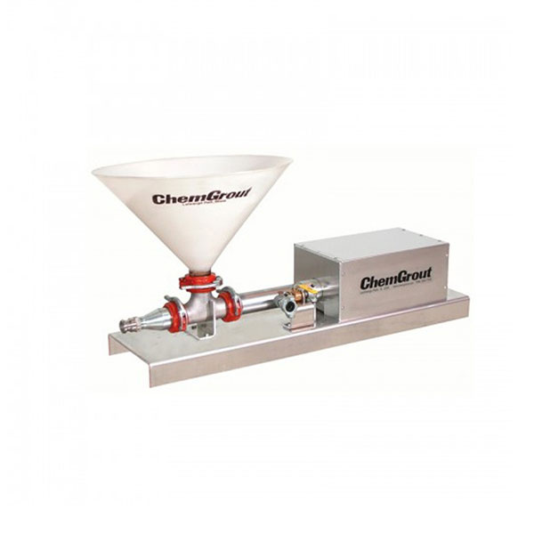 El CG-500/031 cuenta con dos tanques de mezcla de 70 galones (265 litros), una tolva de retención grande de 45 galones (170 litros) y una bomba de lechada de pistón de acción simple de 3 “. Cada tanque de mezcla está equipado con deflectores, triturador de bolsas y un mezclador de paletas de alta eficiencia y velocidad variable que proporciona una mezcla rápida de lechada. Las salidas de los tanques son puertas correderas grandes que permiten que los materiales de lechada viscosos fluyan rápidamente hacia la tolva de sujeción extraíble. Los tanques de mezcla doble alimentan alternativamente esta gran tolva de retención que proporciona velocidades de bombeo continuas de hasta 16 gpm. La bomba de lechada es una bomba de pistón de acción simple de 3 “de desplazamiento positivo que se desmonta con solo un martillo para una limpieza rápida y completa.
